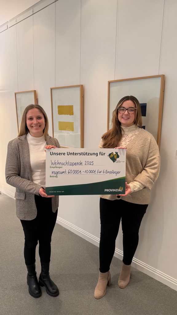 Ende des Jahres 2025 initiierte der Verein „Provinzialer in Westfalen-Lippe helfen e.V.“ eine große Weihnachtsspendenaktion innerhalb der Provinzial Versicherung. Durch die Mitarbeiterinnen und Mitarbeiter kamen rund 30.000 Euro zusammen, die das Unternehmen anschließend verdoppelte. So sammelte der Verein insgesamt eine Rekordsumme von 60.000 Euro, die an sechs verschiedene soziale Projekte in Westfalen-Lippe gespendet werden.